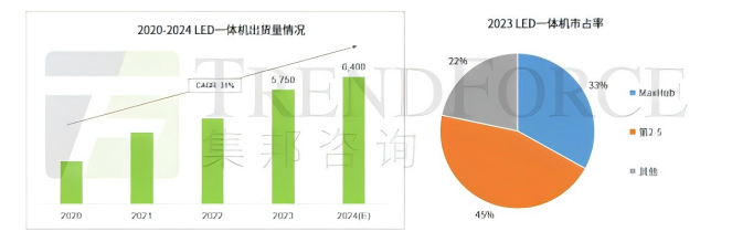 根据TrendForce《2025全球LED显示屏市场报告》显示,与传统LED拼接屏不同的是, LED一体机 (All-in-One LED Display) 为标准化产品搭配控